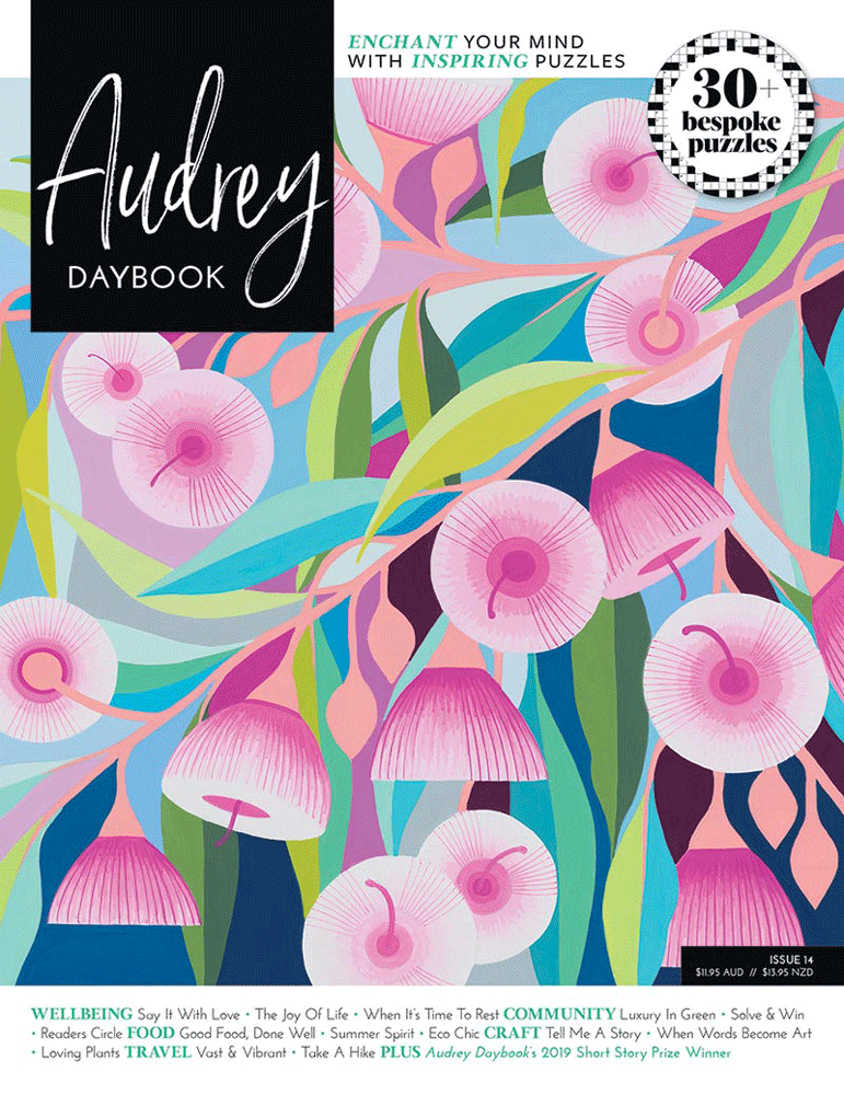 During these languid summer months, take the time to immerse yourself in Audrey. In Issue 14, we're talking about the importance of story-telling with Cath Keenan from the Story Factory, the joy of gardening with Summer Rayne Oakes, and sustainability and native foods with the Warndu Mai team. Plus with colouring in, fighting fish origami, and our enchanting crosswords and puzzles, there’s a mindful activity for every mood.