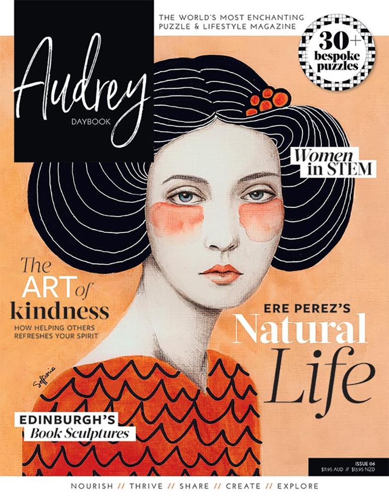 In this issue of Audrey, we explore both creativity and kindness, and the myriad ways they can manifest. Indulge in the animal-themed colouring pages within our Creativity chapter or try your hand at origami using our pretty patterned paper. Discover how small acts of mindful kindness can reap large rewards, and an inspiring mix of puzzles to enchant your mind.
