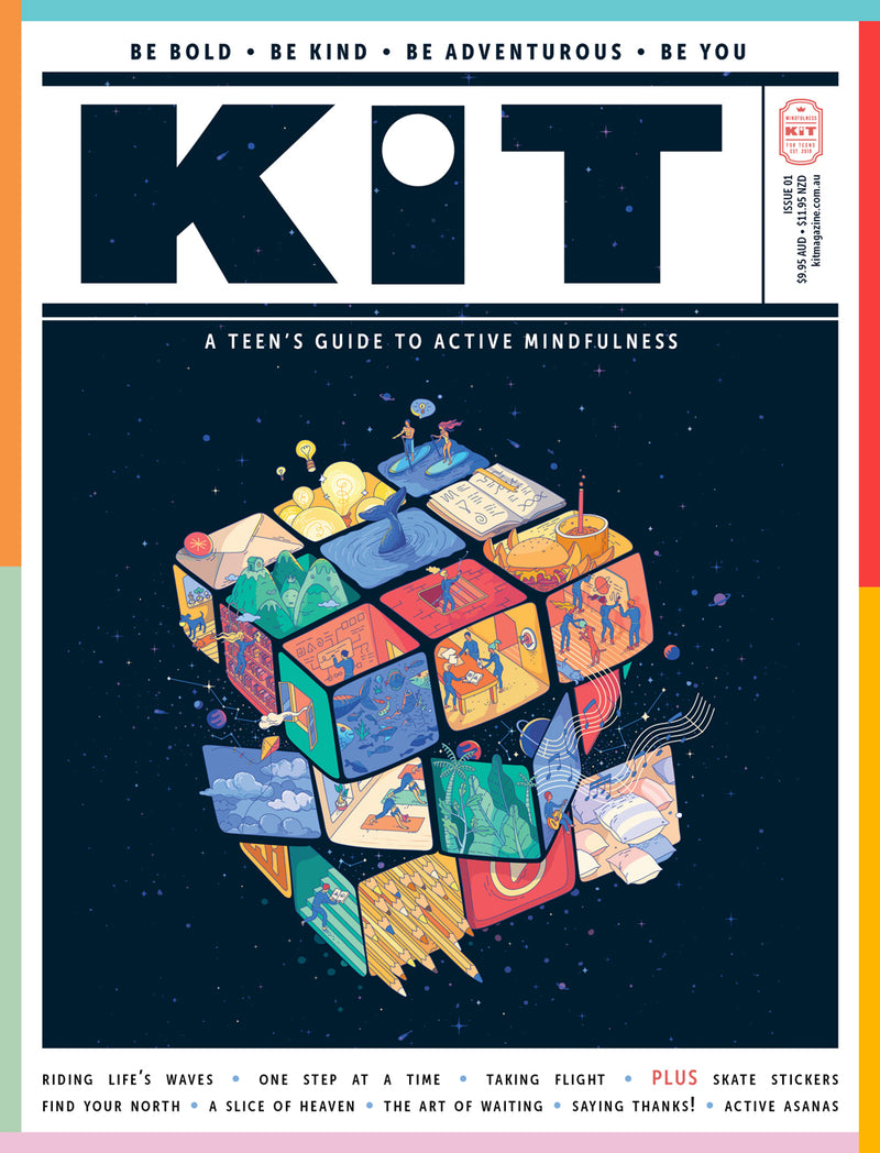 Created with teen boys in mind, KIT is the ultimate personal development guide for ages 9 to 15+, motivating them to live a more active, ambitious and mindful life. Published every two months, each issue is filled with exciting and inspiring stories, interviews, artworks and infographics, plus goal-setting guidance and activities to help build resilience, courage and creativity.
