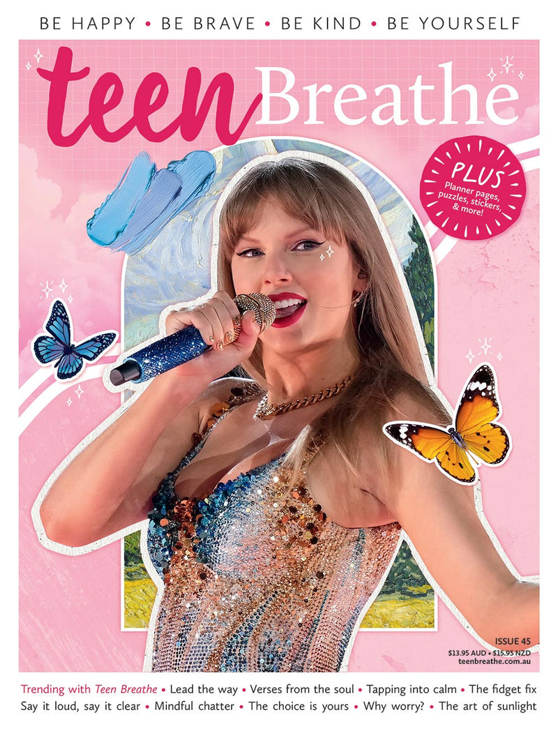 In Issue 45 of Teen Breathe, discover how to nurture self-confidence and let your inner light shine. Learn to express yourself with clarity, trust your decisions, and gently ease any worries on your mind. Find calm through EFT tapping, flow with playful yoga poses, and embrace the soul-soothing power of poetry and cyanotype. Treat yourself to comforting bakes from Brooki Bakehouse founder Brooke Bellamy. Plus, enjoy mindful moments with pages of colouring, calming puzzles, and a DIY chatterbox to guide you towards gentle, grounding activities – one thoughtful prompt at a time.