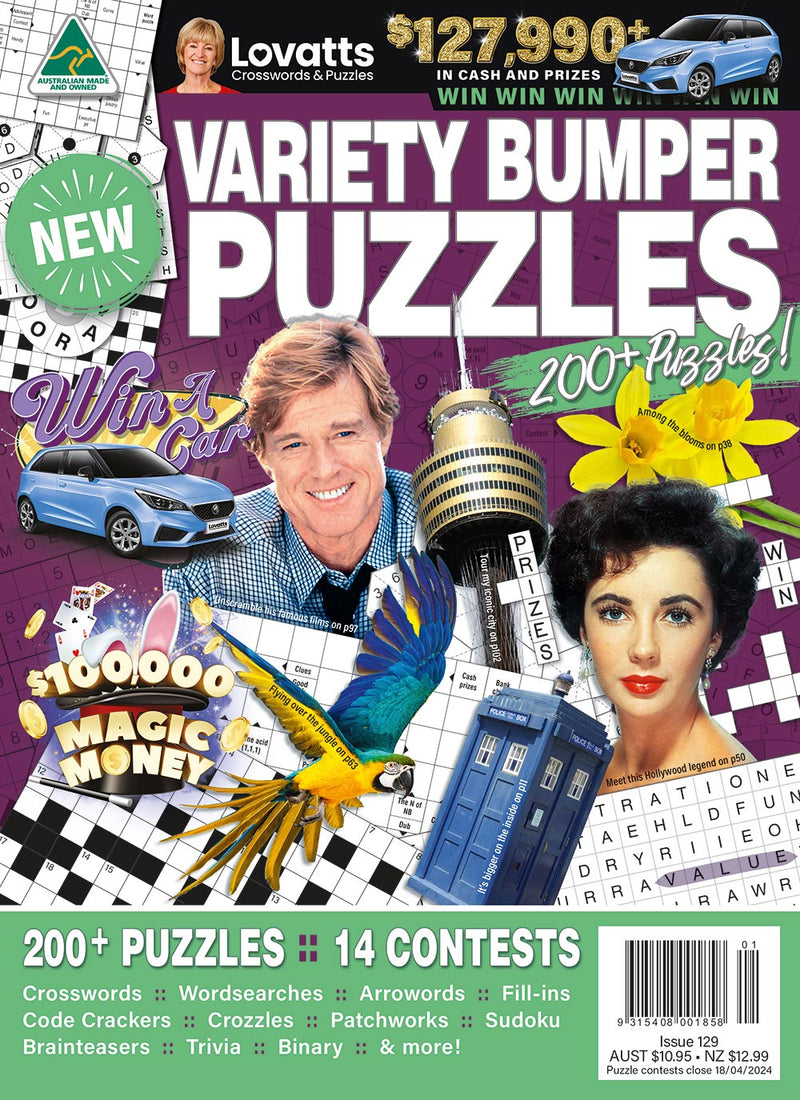 Filled to the brim with the best mix of fun and relaxing puzzles, Variety Bumper Puzzles has over 200 puzzles to keep you entertained for hours! It's Lovatts Crosswords & Puzzles' biggest magazine with 120 pages of arrowords, wordsearches, crosswords, trivia, brainteasers, logic puzzles, patchworks, fill-ins, and more, there’s sure to be something for everyone. Plus, there are lots of contests in every issue and over $127,990 in cash and prizes to be won!